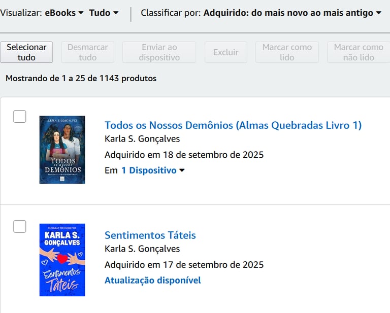 Dentre todas as suas obras publicadas na Amazon, seja romance, suspense ou fantasia.
